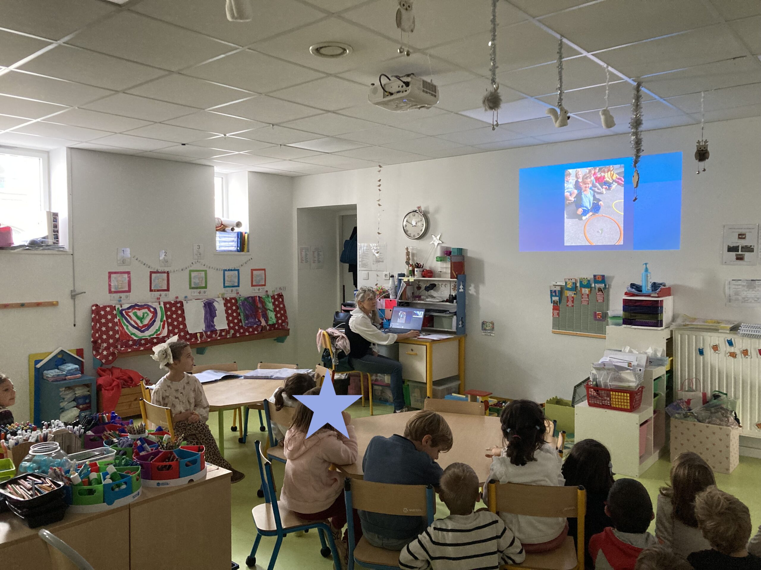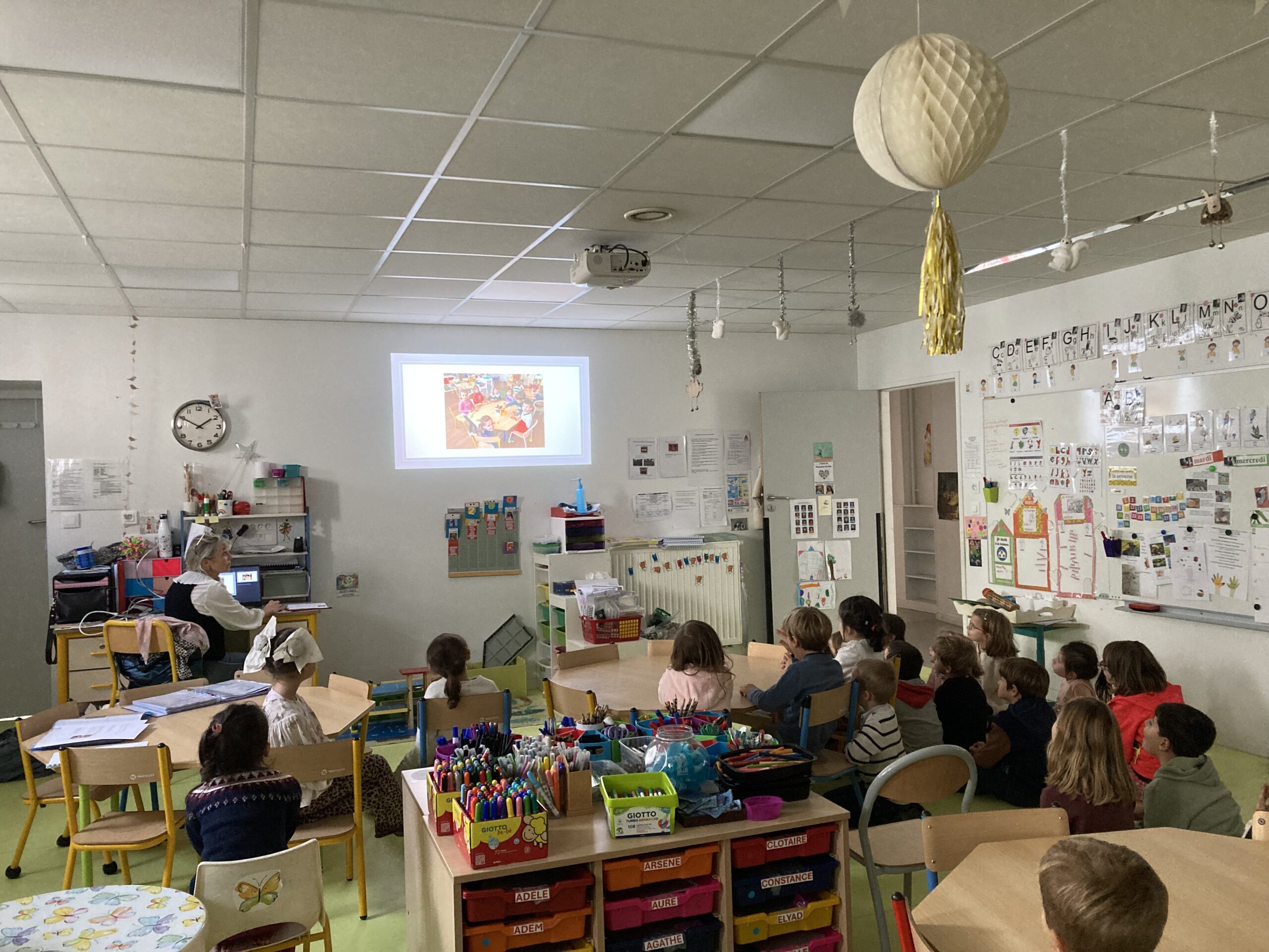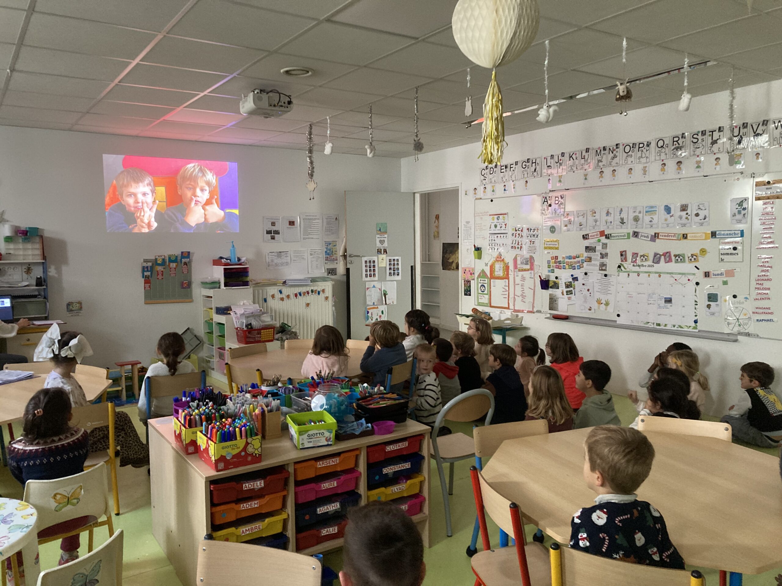 Les élèves de CP et de GS se sont retrouvés plusieurs fois en octobre et novembre pour partager les productions finales de leurs projets respectifs. Les élèves de CP ont apprécié de montrer aux élèves de GS leur production écrite à partir du poème “Les crayons” de Corinne Albaut. Les élèves de GS, en retour, ont invité les élèves de CP à découvrir leur cahier des nombres en photos et en musique. Les élèves ont apprécié ces temps d’échanges qui leur permettent de faire du lien entre les apprentissages du CP et de la GS.