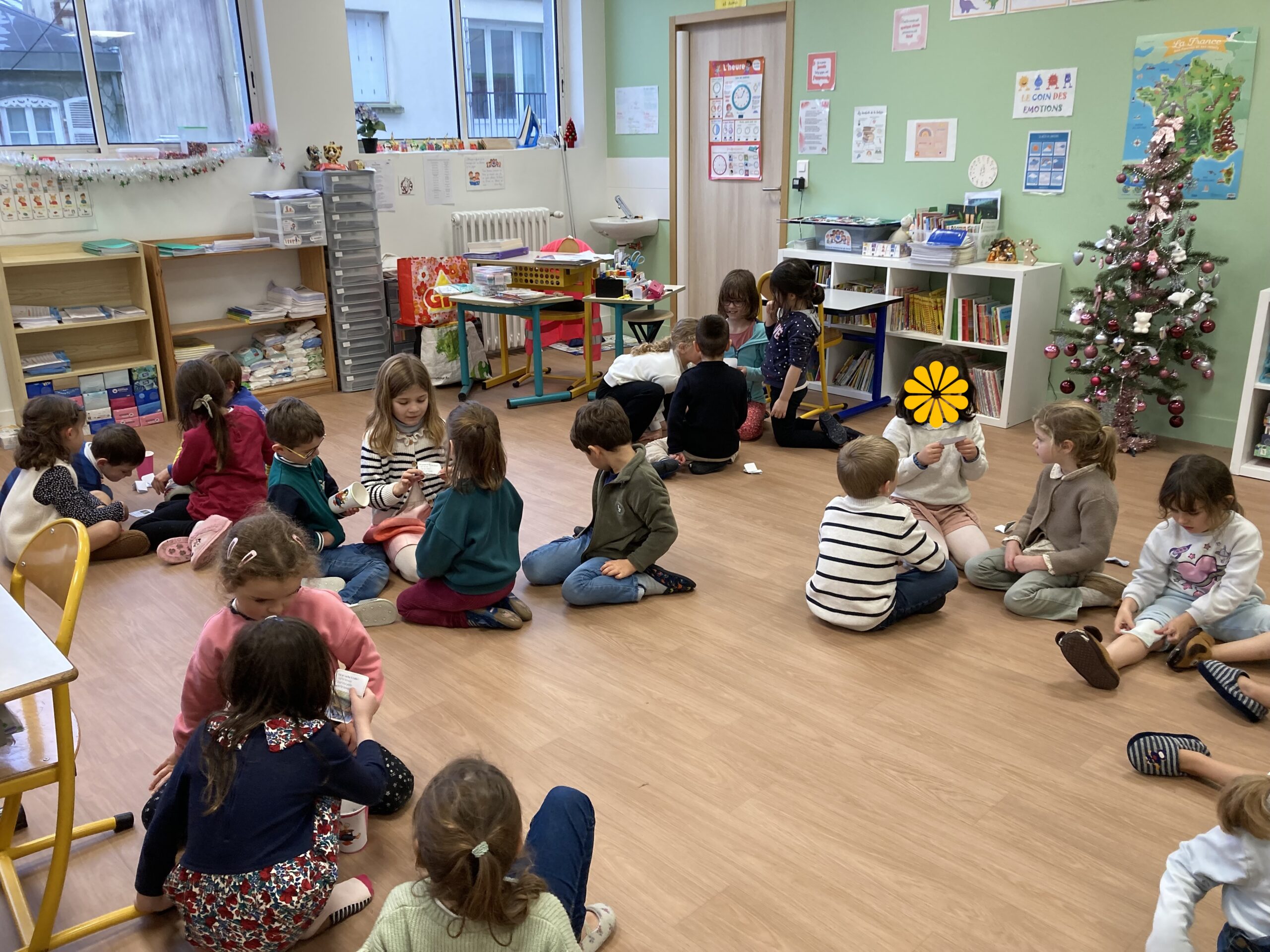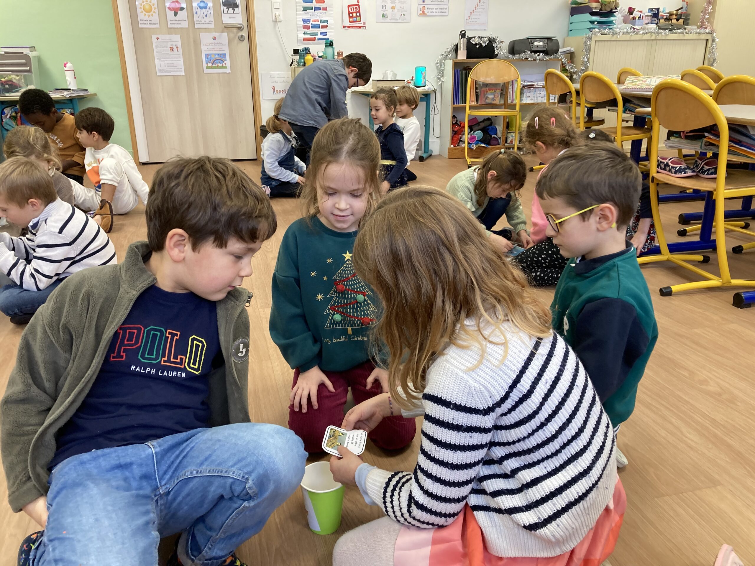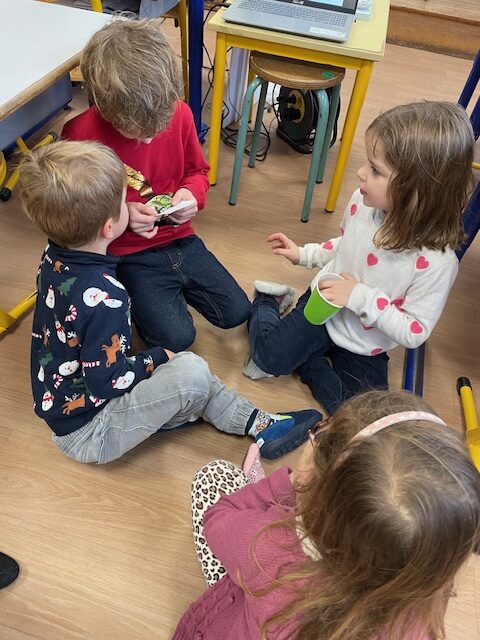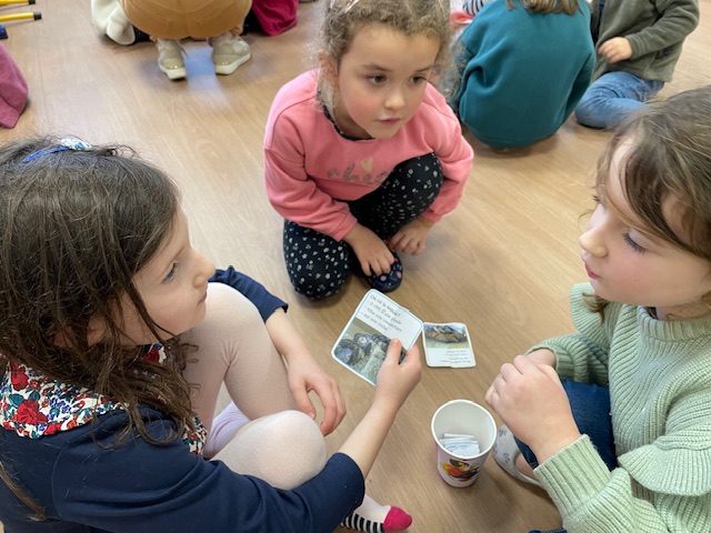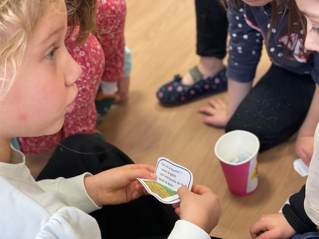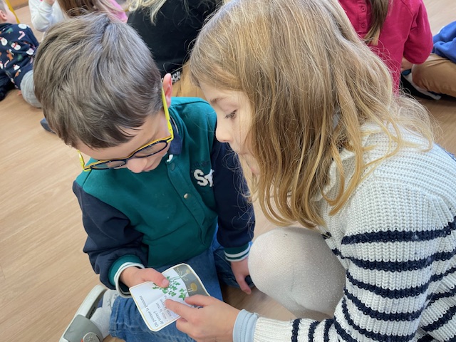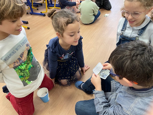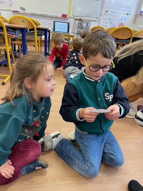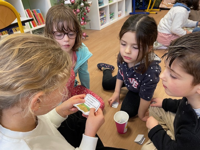 Après avoir lu un petit quiz en classe et créé leurs propres questions, les élèves de CP ont invité les élèves de GS à venir jouer avec eux.
