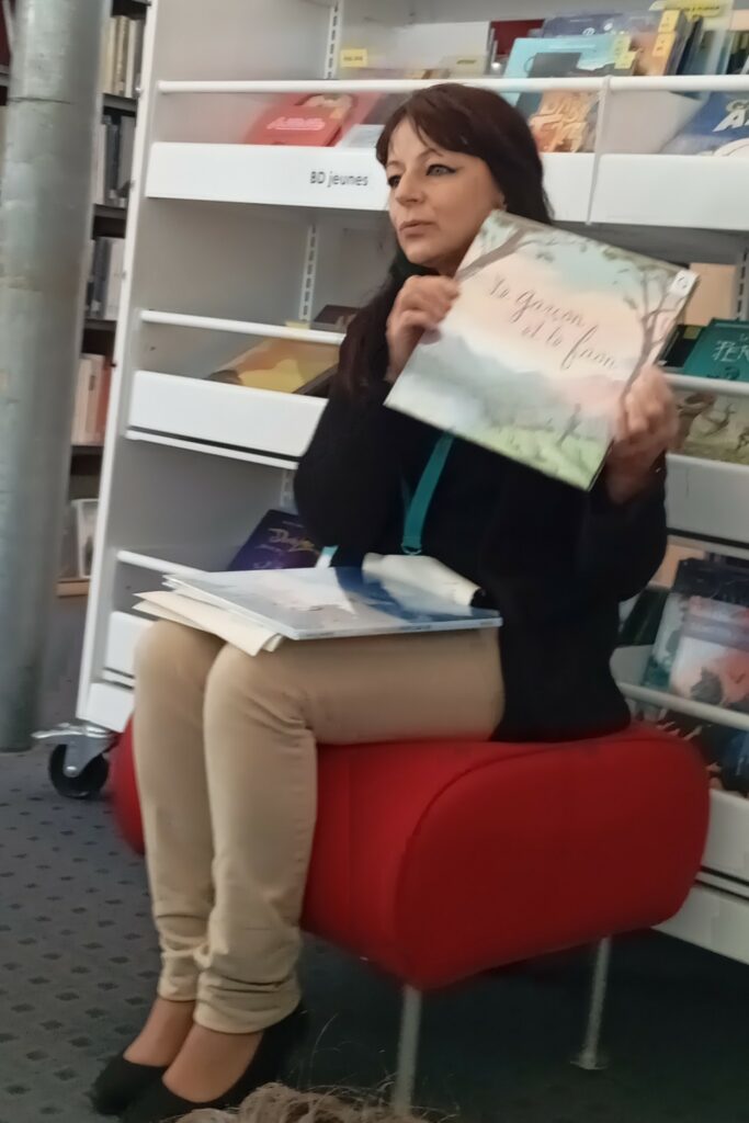 Présentation des premiers albums de la sélection par Sandrine, la bibliothécaire ;
