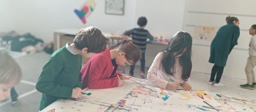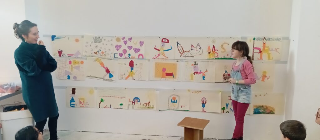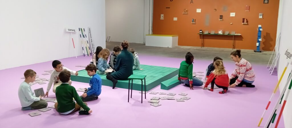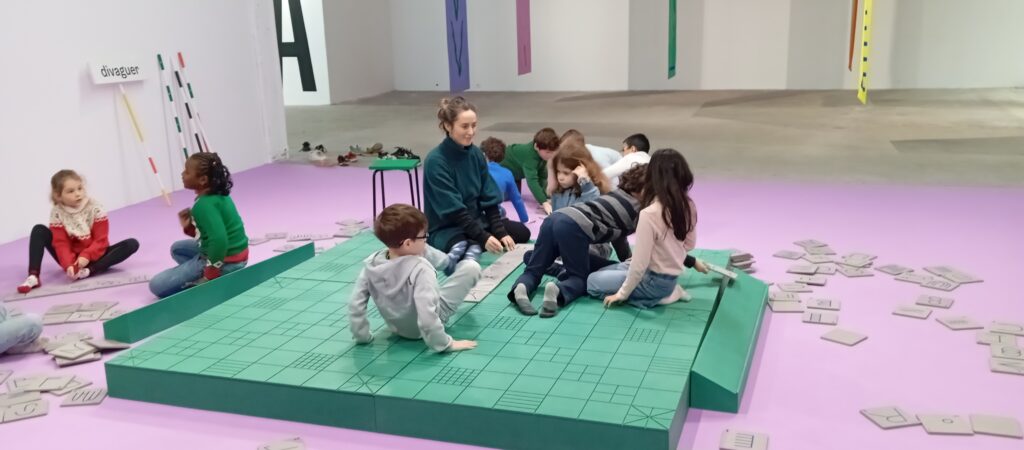 Tout comme leurs camarades de CM, de CP et de moyenne section, les élèves de CE1 ont découvert  l’exposition de Sophie Cure “Alpha, Bravo, Charlie” qui est un ensemble d’ateliers-jeux pour mettre en valeur l’importance du langage.