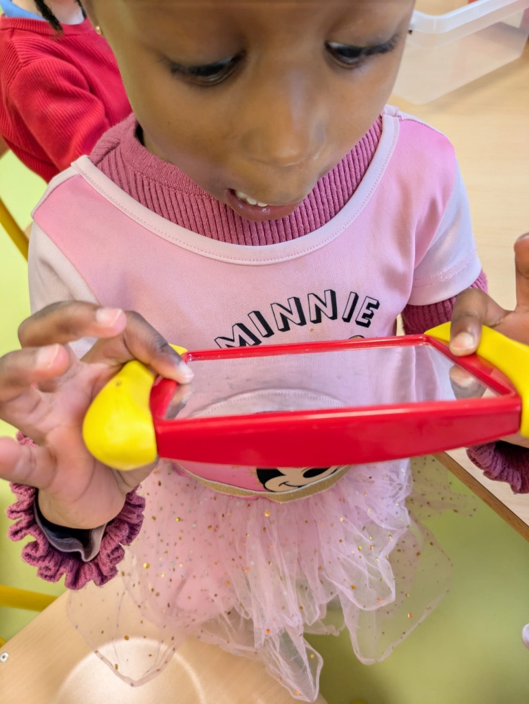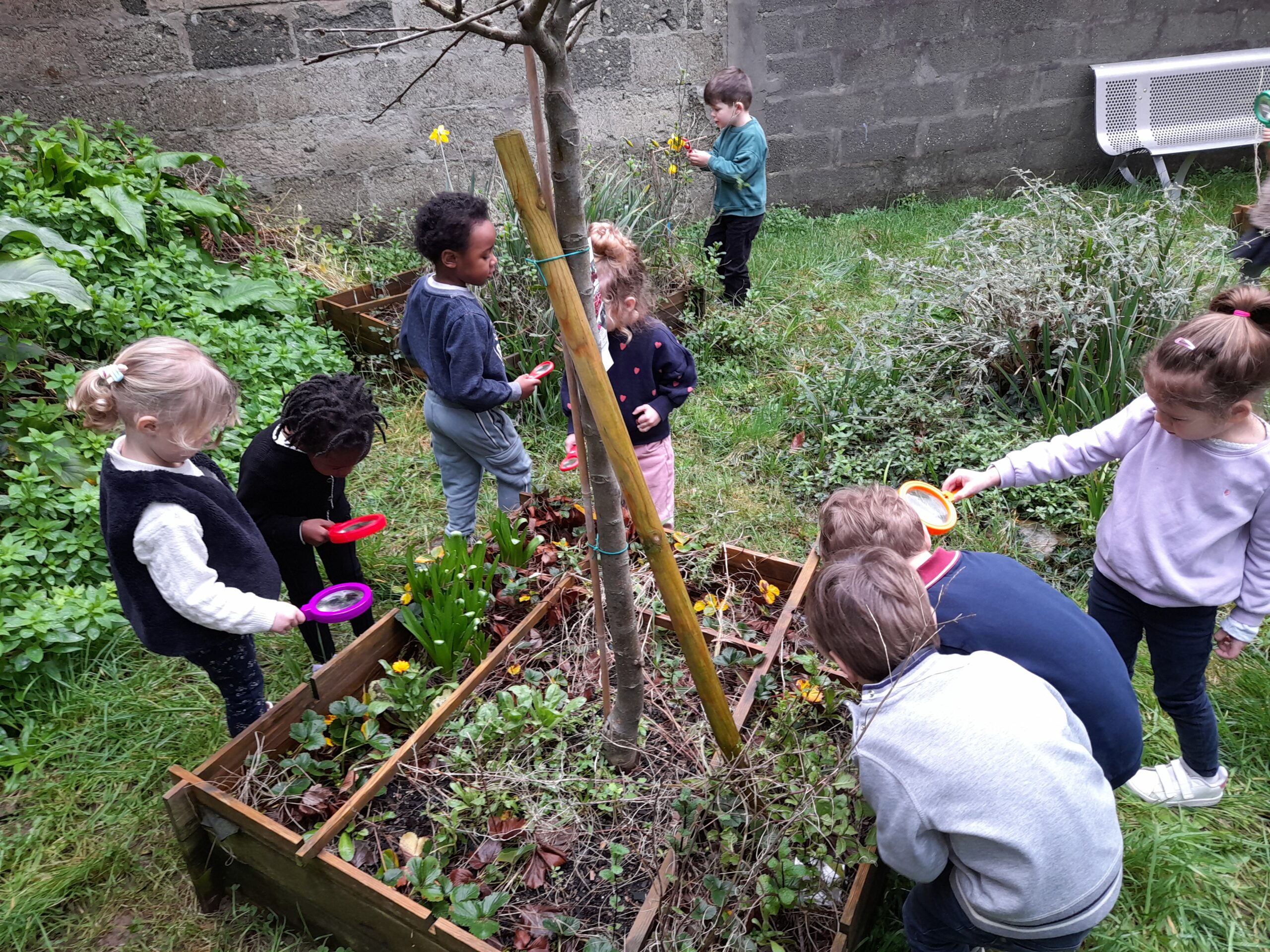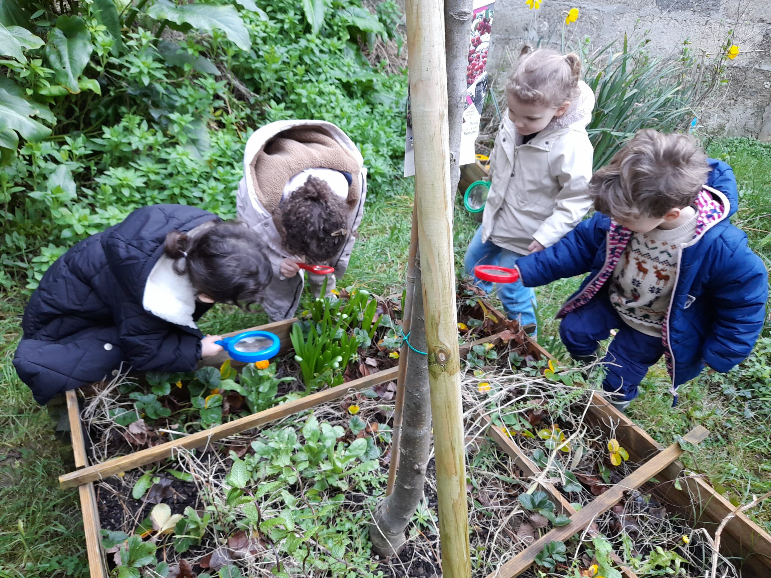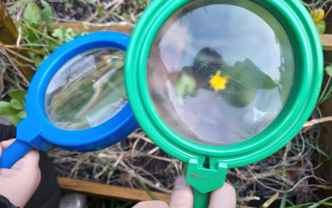 Visite du jardin avec une loupe pour observer…