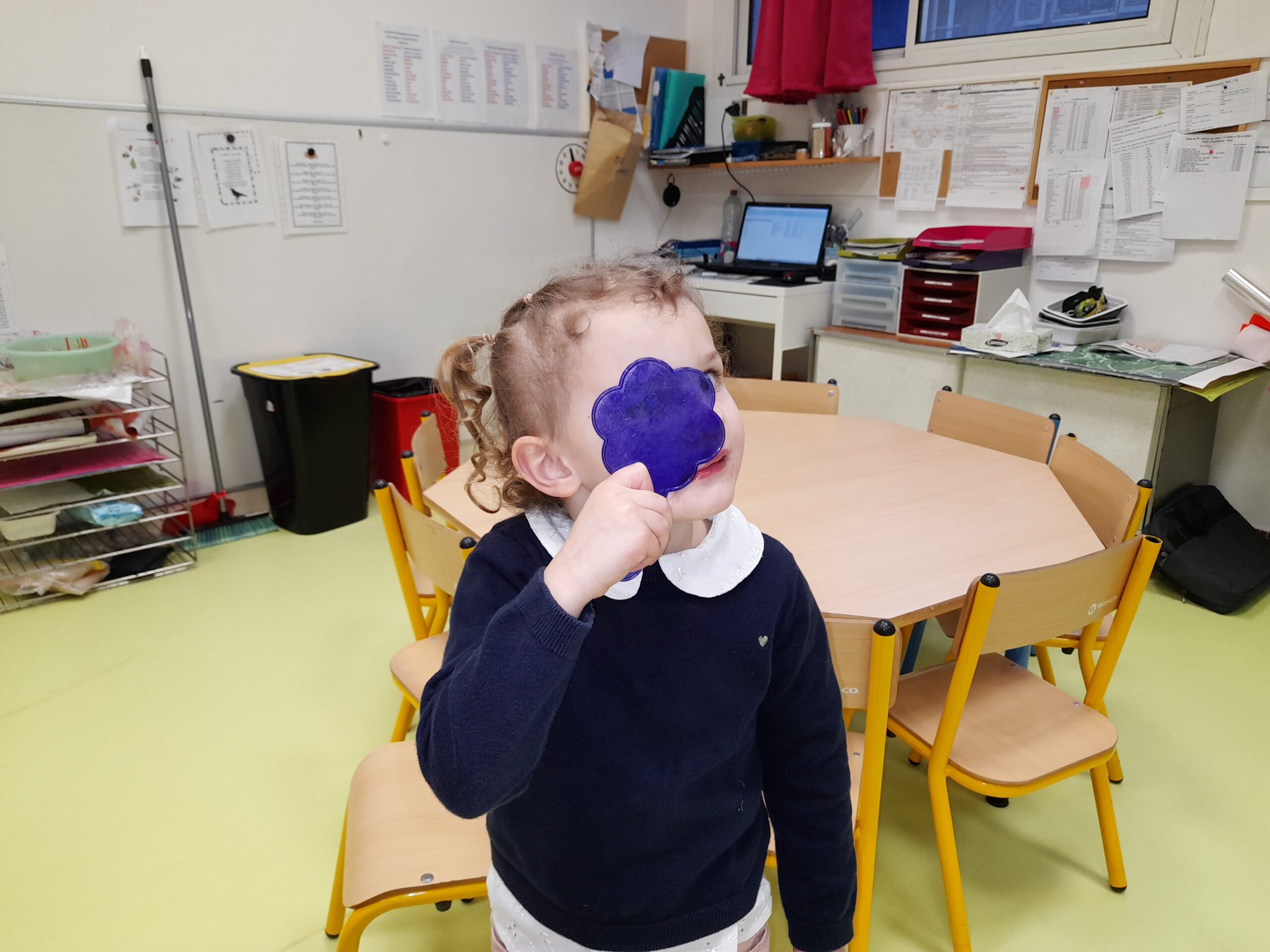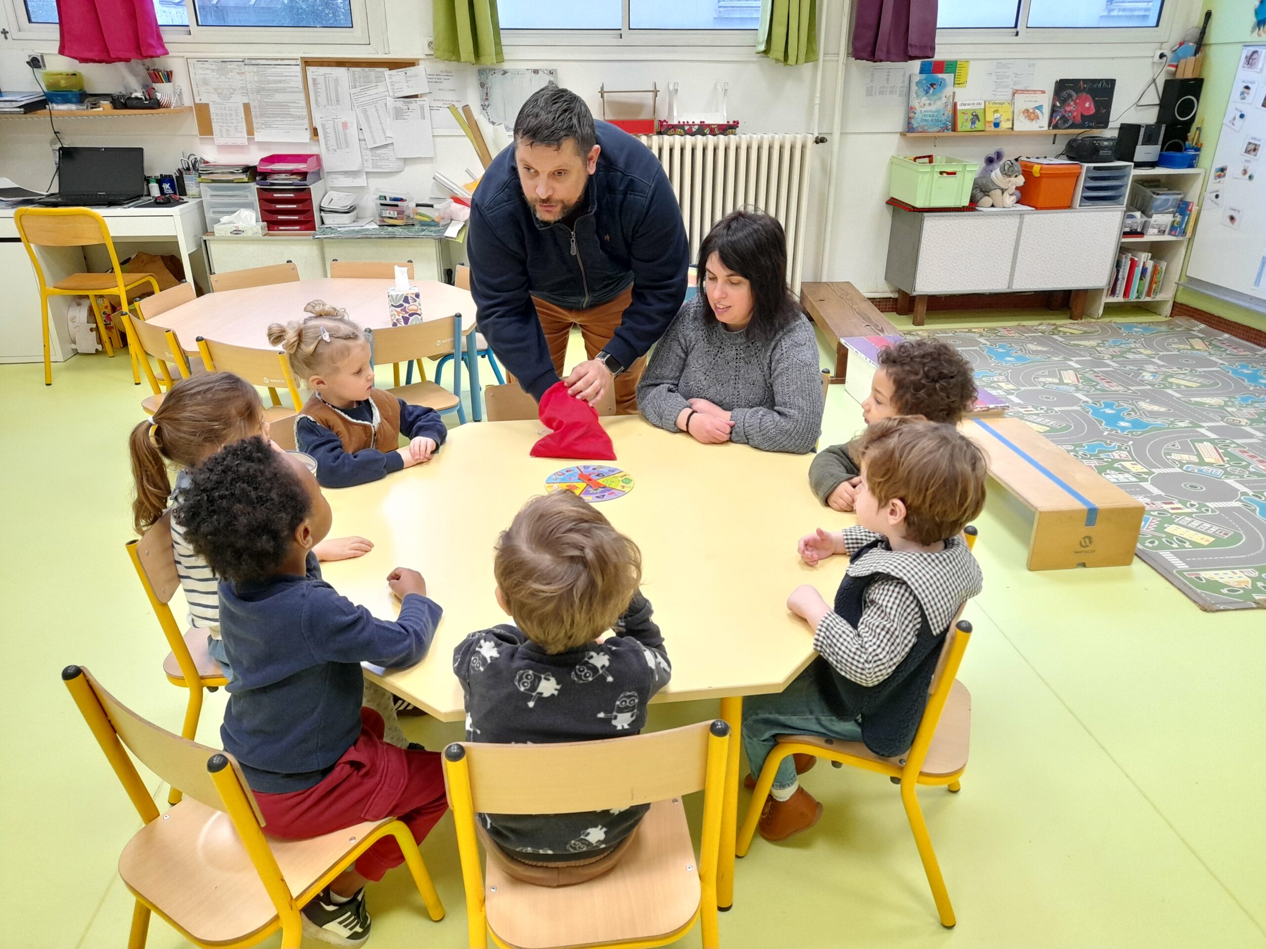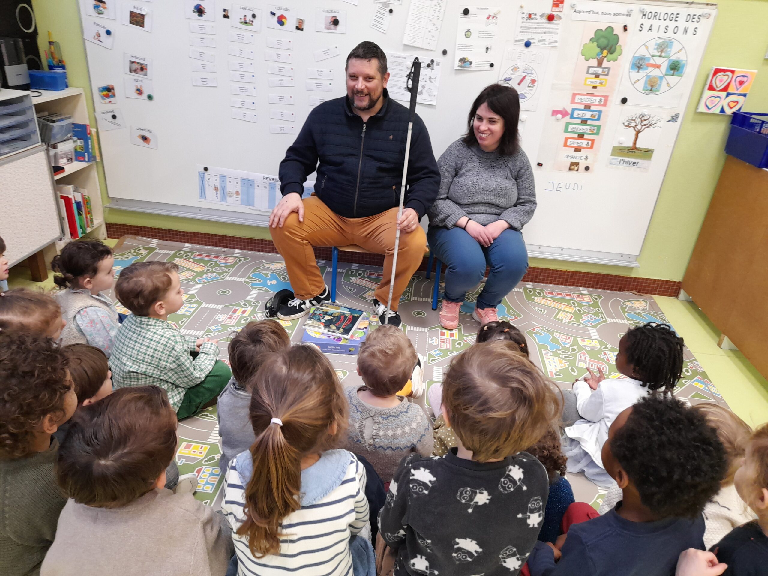 Intervention des parents de Mélissa, mal-voyants pour parler de leur quotidien et jouer avec les enfants.