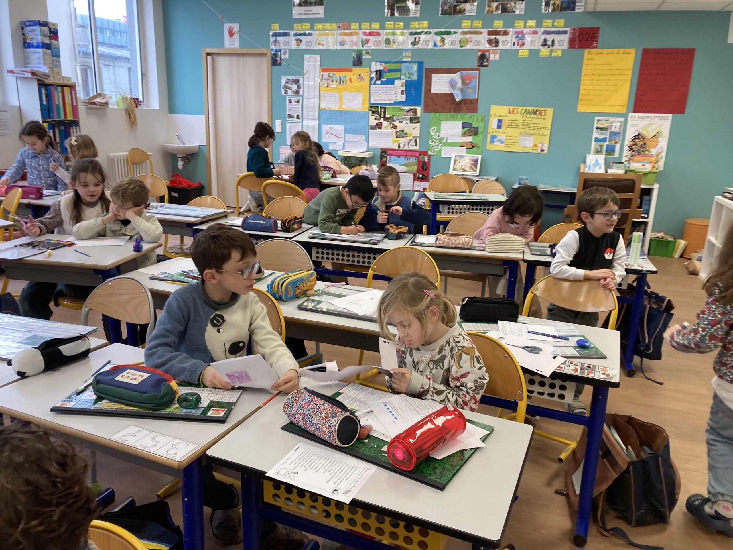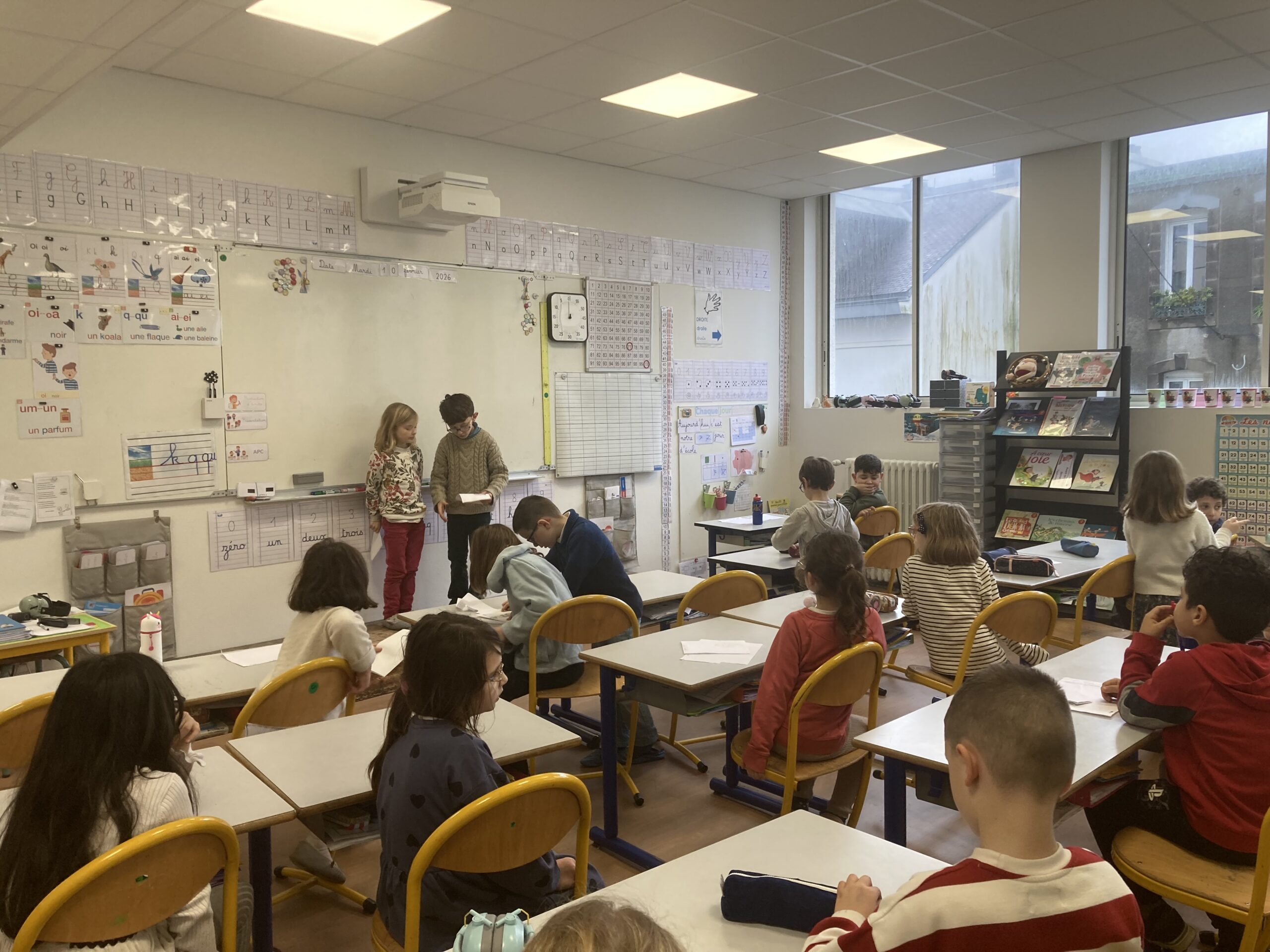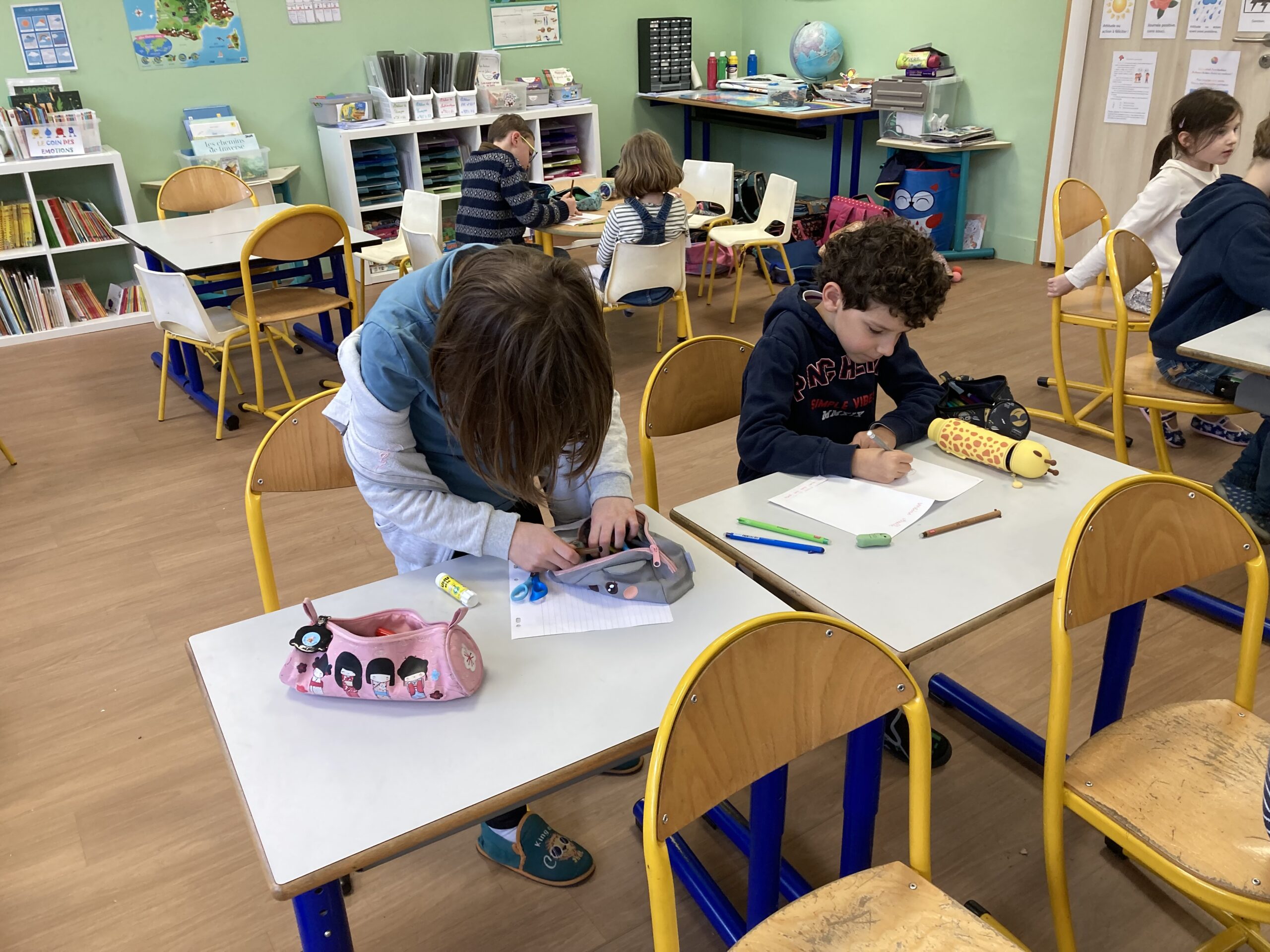 La coopération CE1-CP s’est révélée fructueuse : les CE1, maîtrisant mieux l’écrit que les CP, pouvaient les aider à transcrire leurs belles idées sur le papier.