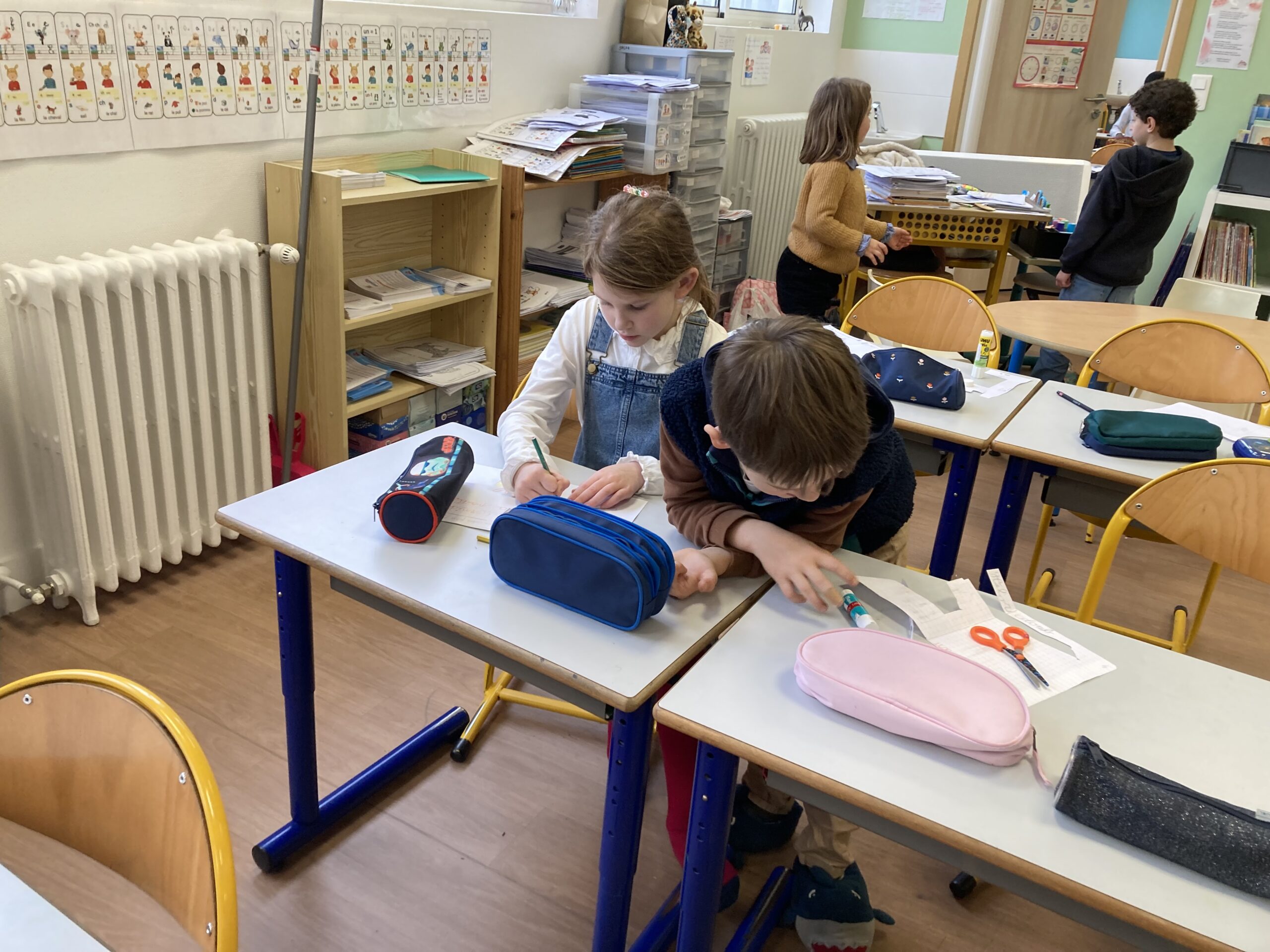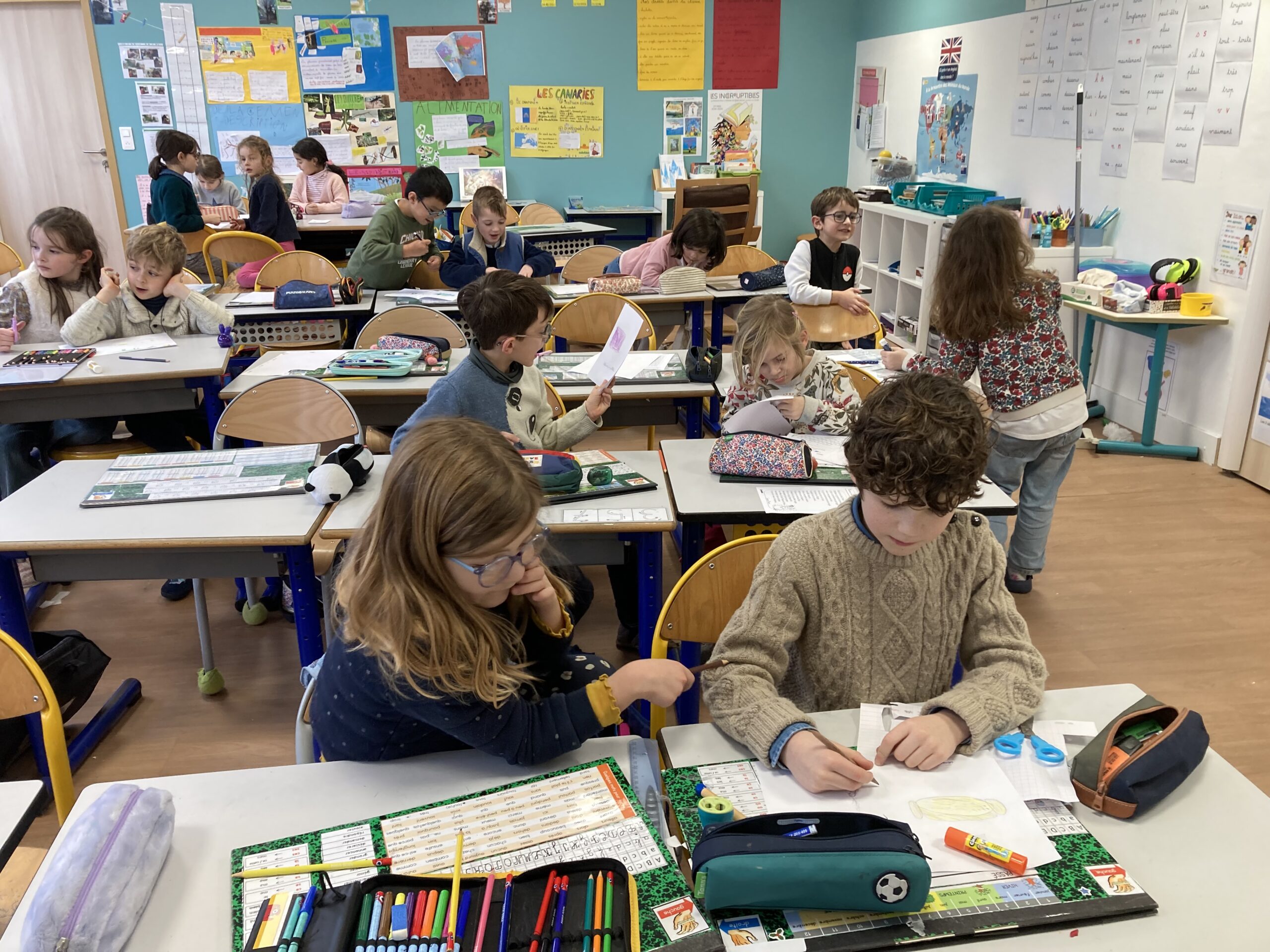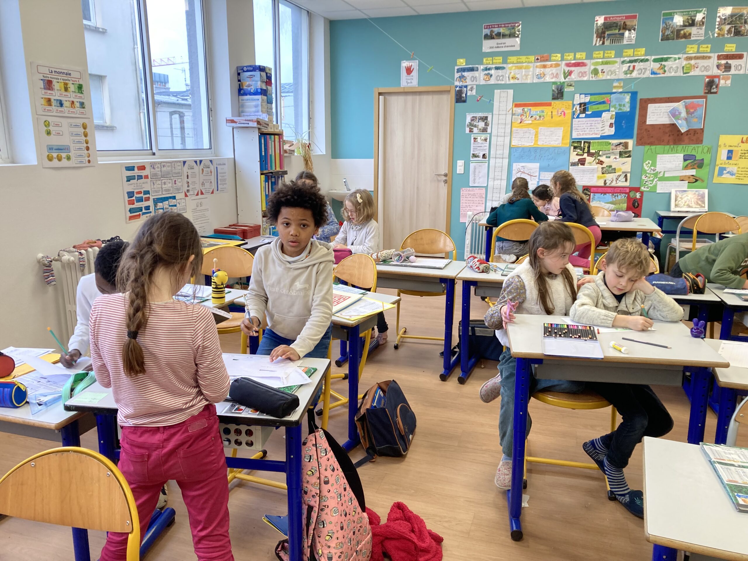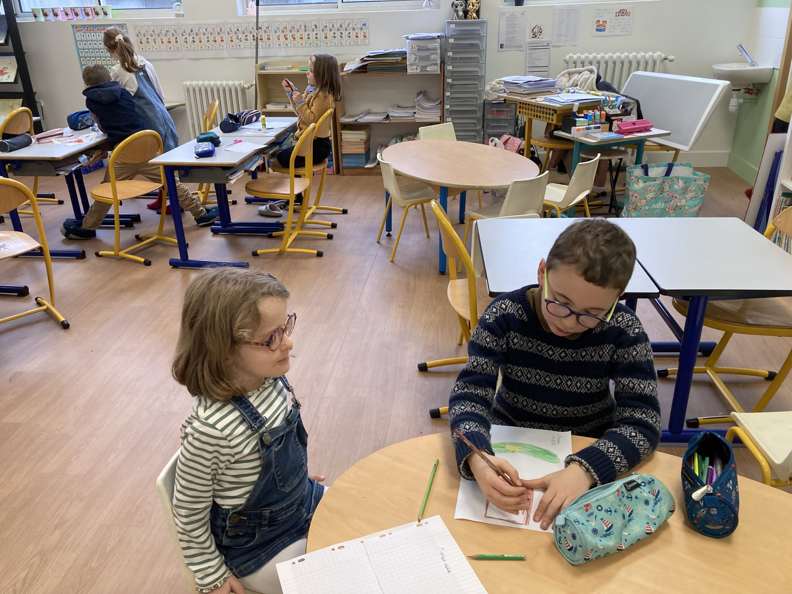 La coopération CE1-CP s’est révélée fructueuse : les CE1, maîtrisant mieux l’écrit que les CP, pouvaient les aider à transcrire leurs belles idées sur le papier.