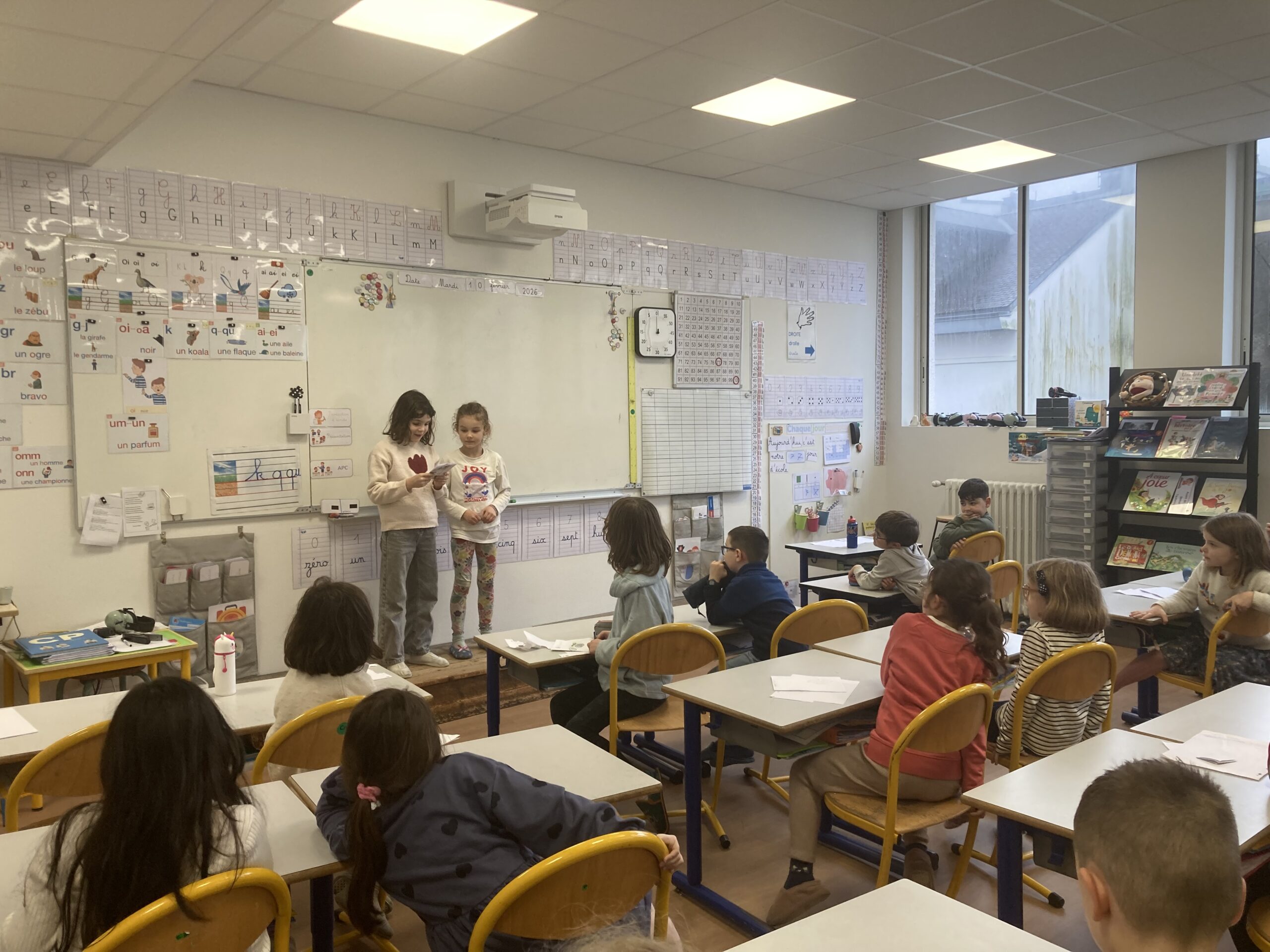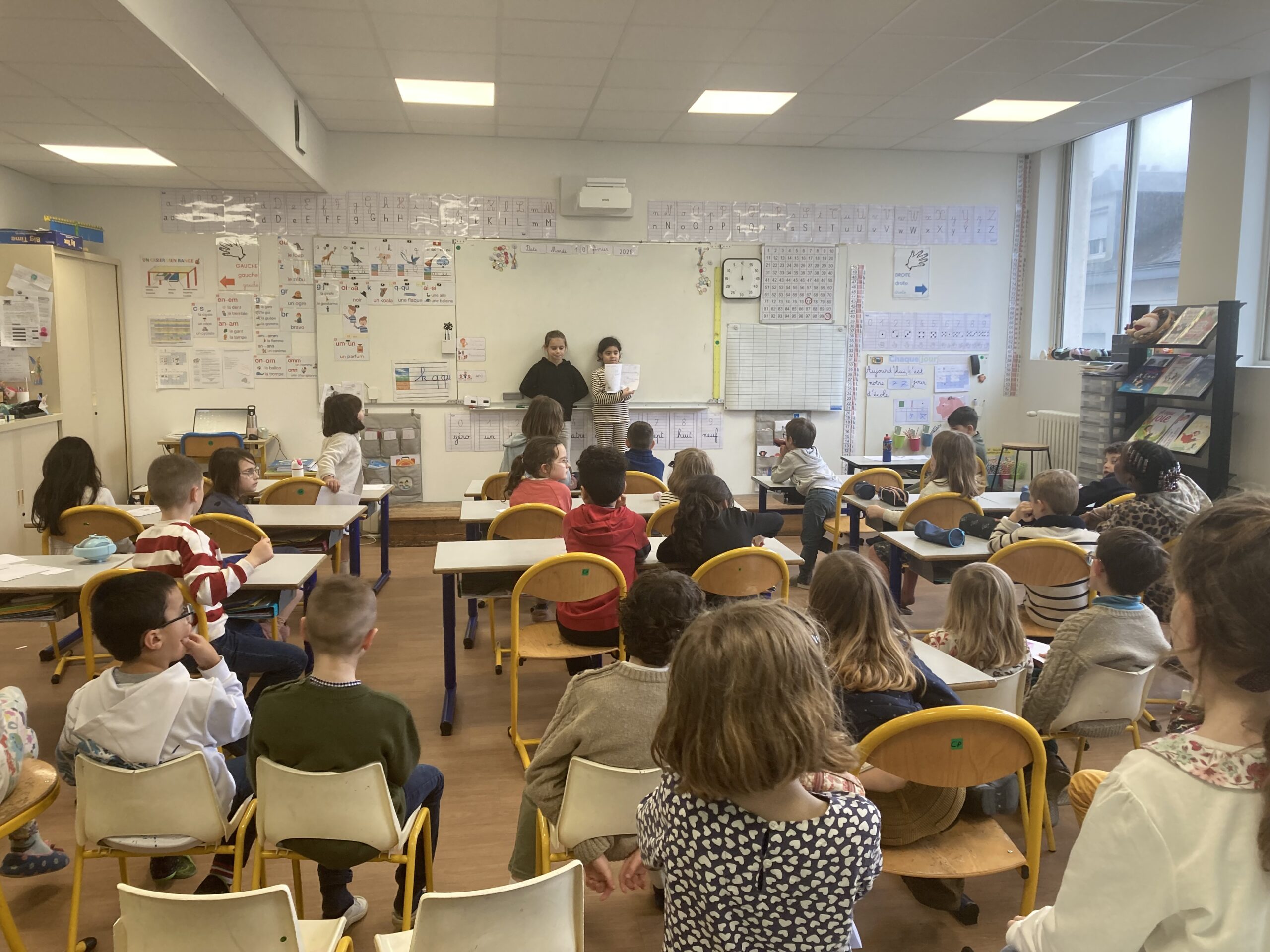 Après plusieurs séances de travail en binômes, ce projet s’est terminé par une restitution de son travail devant les deux classes réunies.