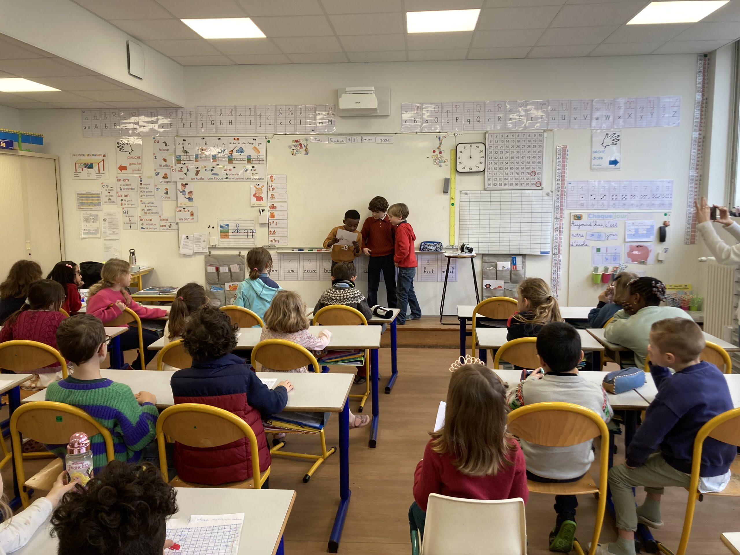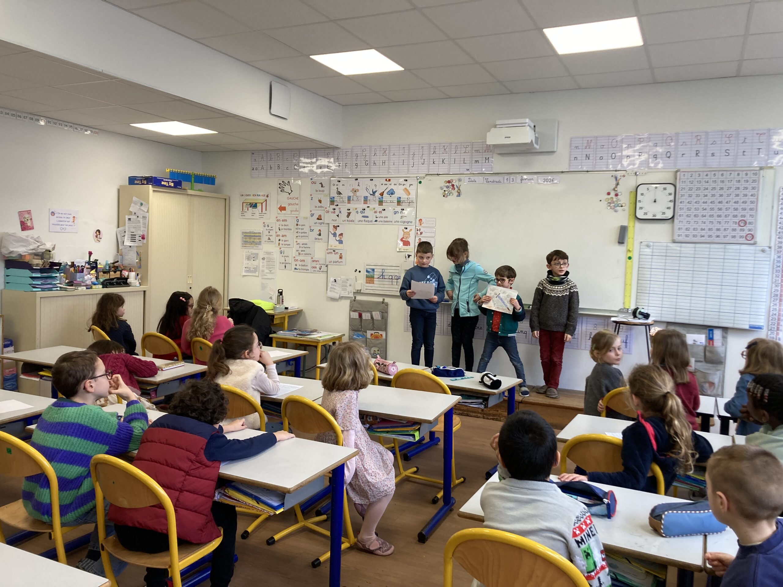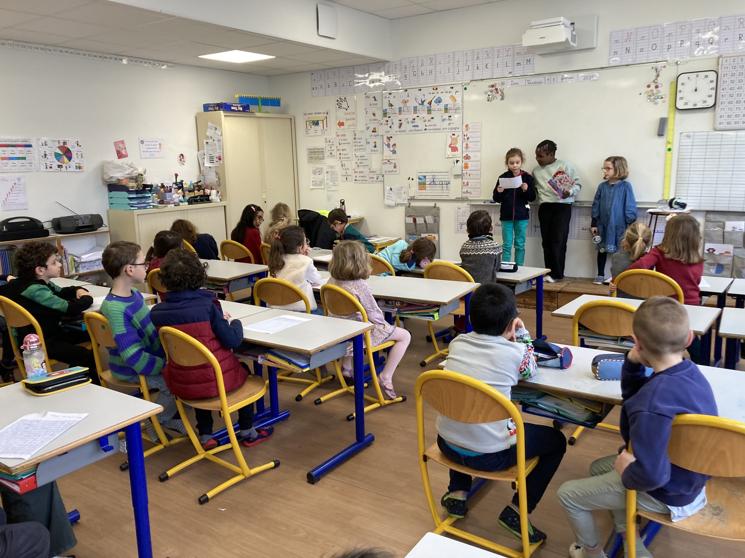 Les CE1 et les CP ont pris plaisir à travailler ensemble, les uns comme les autres se sentant valorisés par cette collaboration !