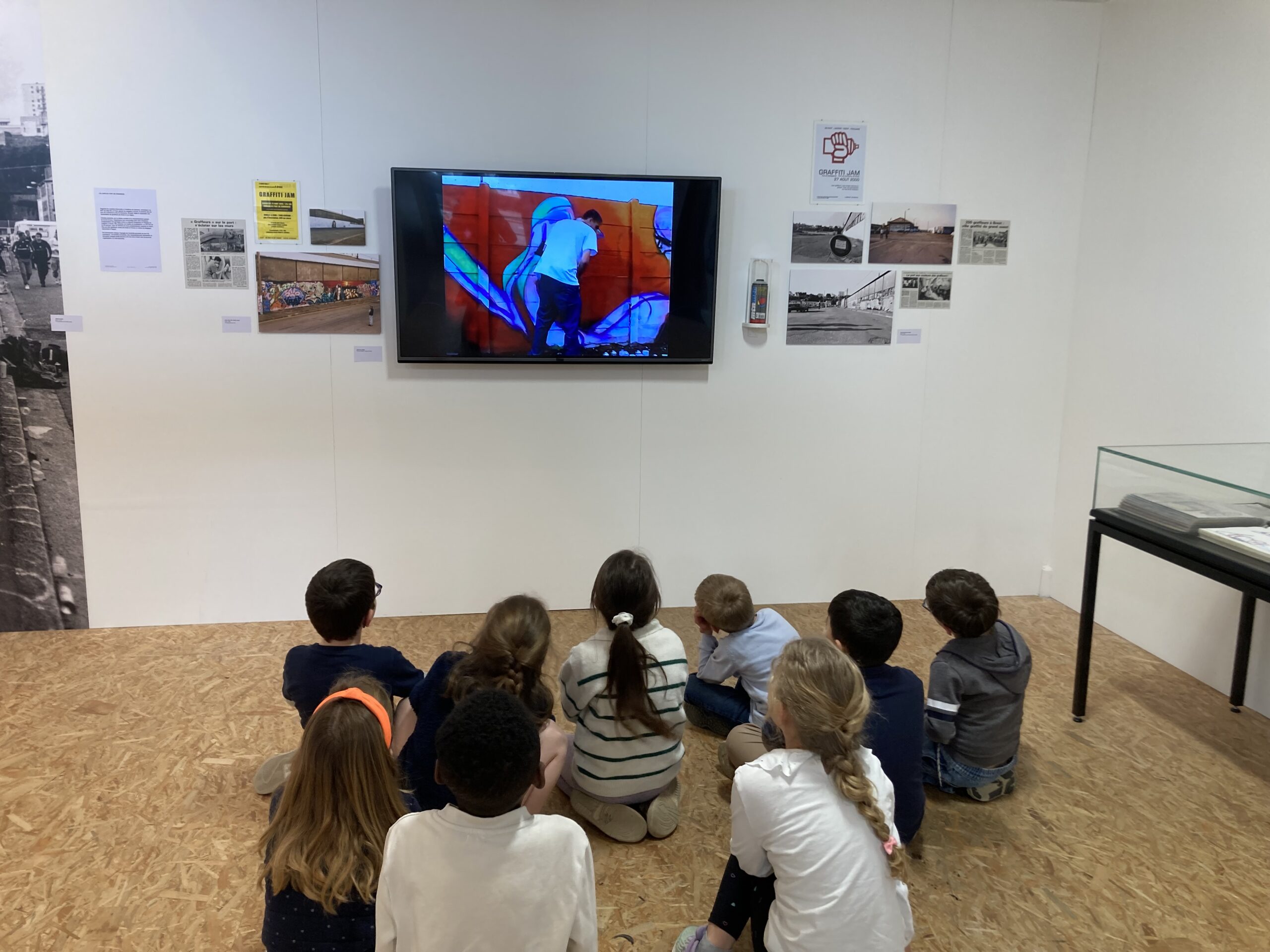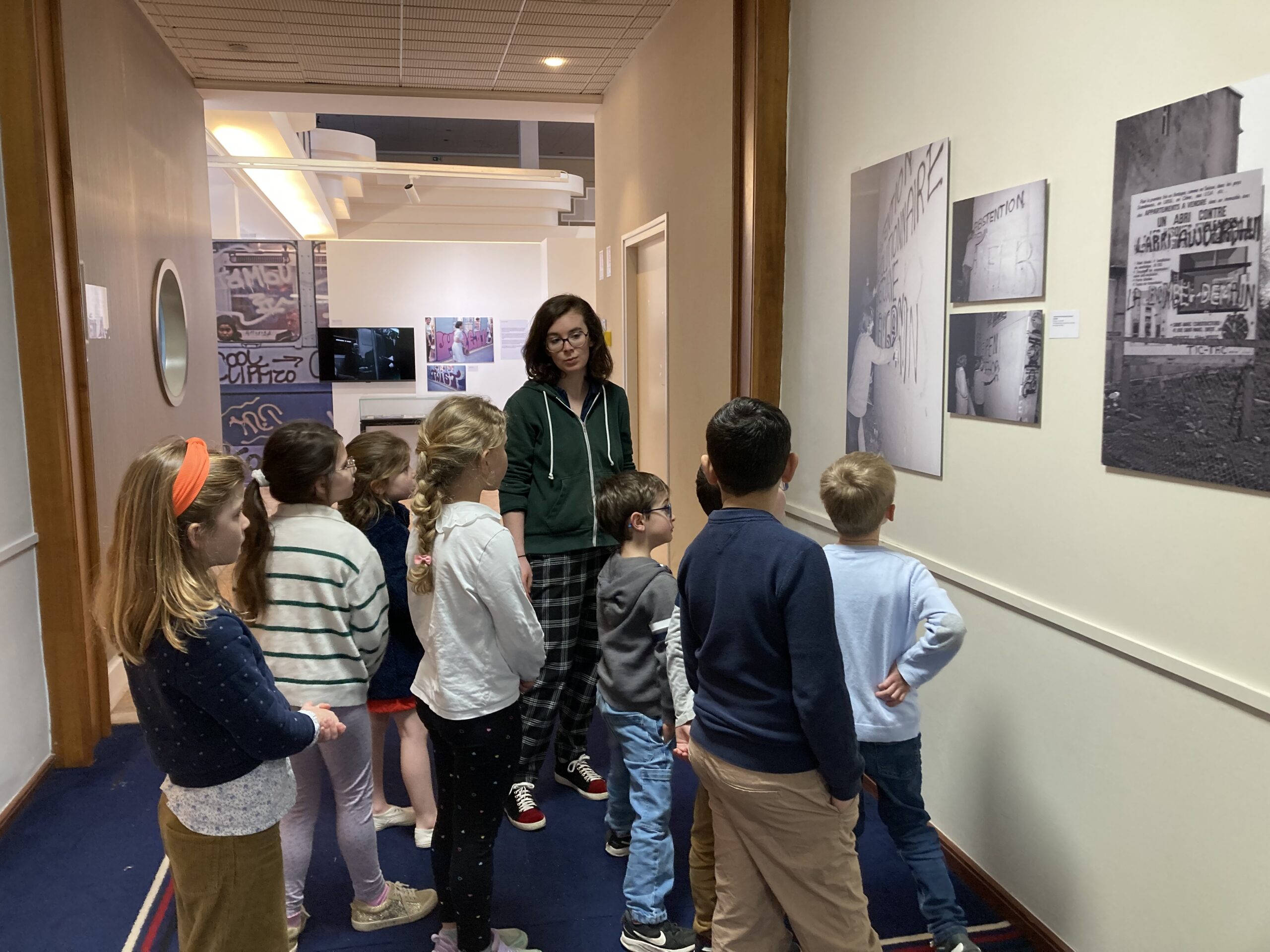 Les élèves de CP se sont rendus au Centre d’Art contemporain Passerelle pour découvrir l’exposition “Brest sous les bombes” qui retrace l’histoire du graffiti en région brestoise.